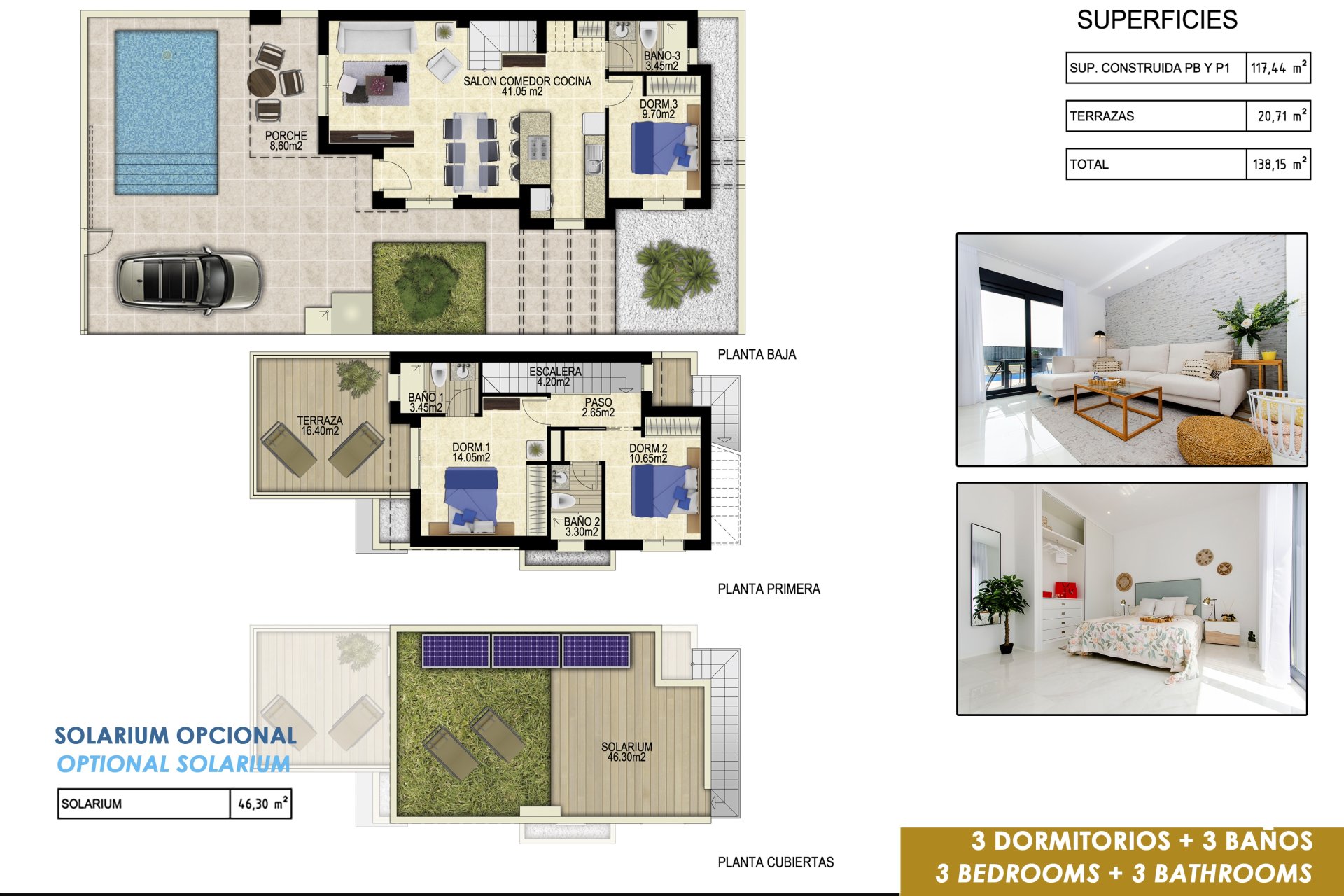 Los exteriores de estas viviendas independientes en Orihuela están diseñados para maximizar el disfrute del entorno. Cada propiedad cuenta con un jardín privado, ideal para crear un oasis personal de tranquilidad. Las terrazas ofrecen un espacio adicional para relajarse o entretener a los invitados, mientras que la opción de un solárium permite disfrutar de vistas panorámicas y del sol durante todo el año. Además, cada vivienda dispone de una piscina privada, perfecta para refrescarse en los días calurosos. La inclusión de una pérgola añade un toque de elegancia y funcionalidad, proporcionando sombra y estilo a los espacios al aire libre.