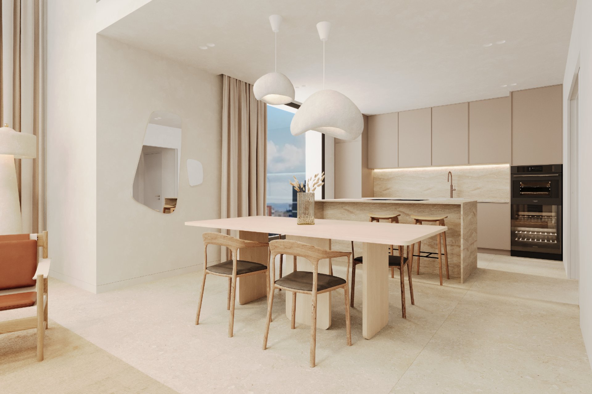 Los áticos de dos dormitorios se caracterizan por su verticalidad y la integración perfecta de la vida al aire libre a gran altura.