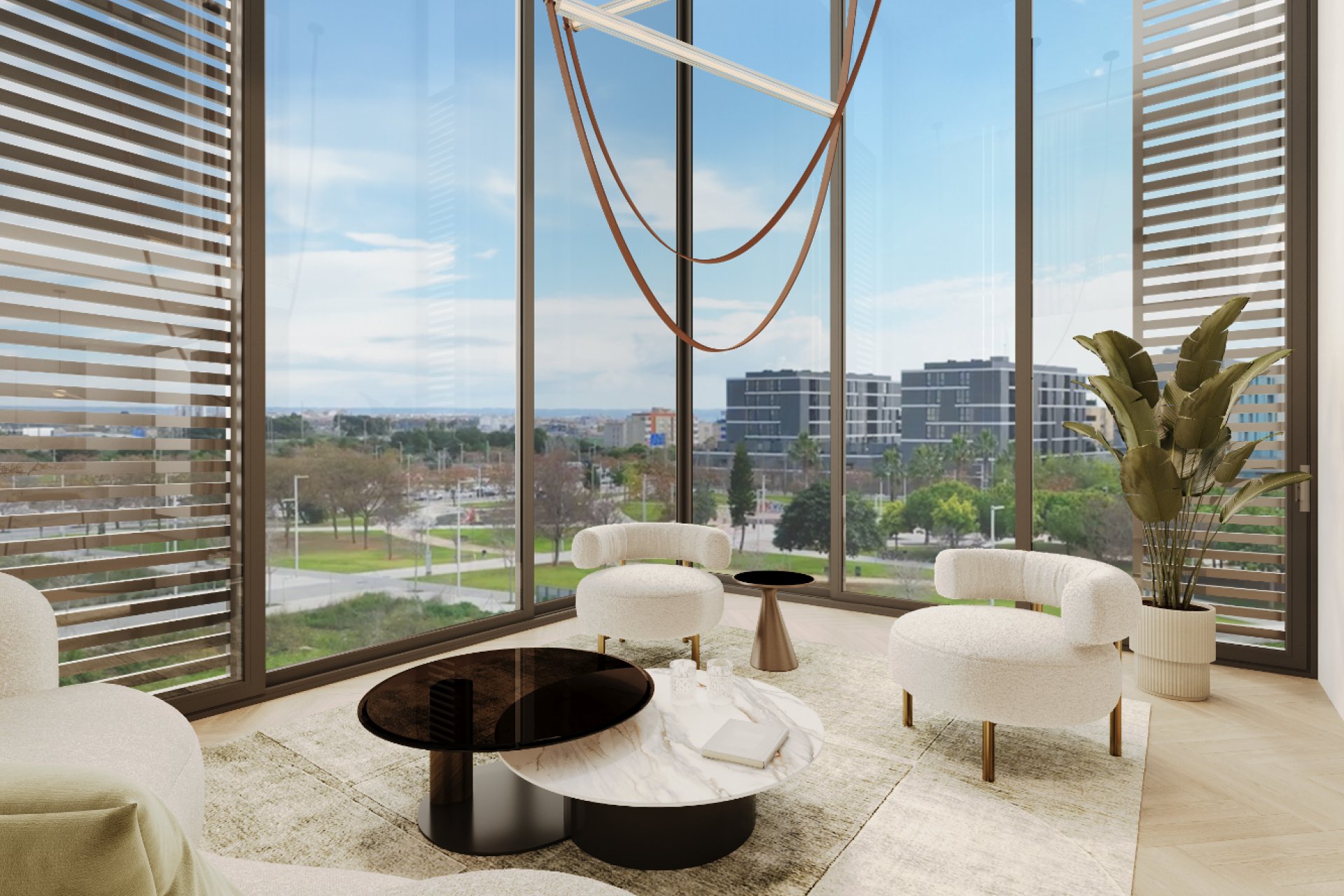 Materialidad: Acristalamiento panorámico de suelo a techo con rotura de puentes térmicos y alto aislamiento acústico para un silencio urbano absoluto.