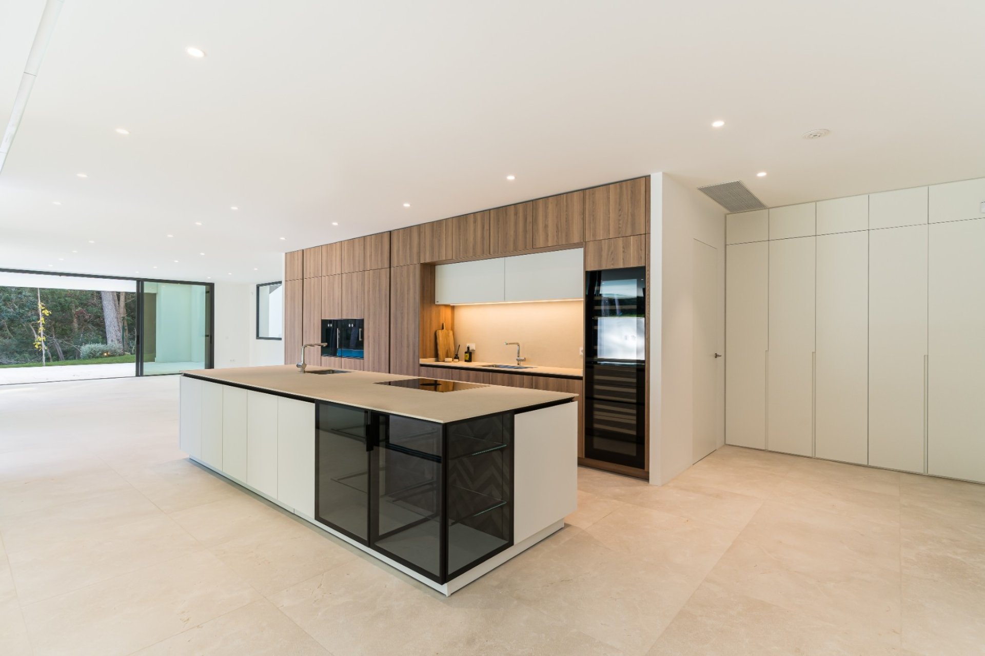 El corazón de la casa es un espectacular espacio diáfano que difumina las fronteras entre el interior y el exterior. Una elegante cocina Siematic, equipada con electrodomésticos Gaggenau de calidad profesional, sirve como punto de encuentro social, con vistas a la amplia terraza y a una espectacular piscina de 25 metros. Santuarios privados y bienestar personalizado