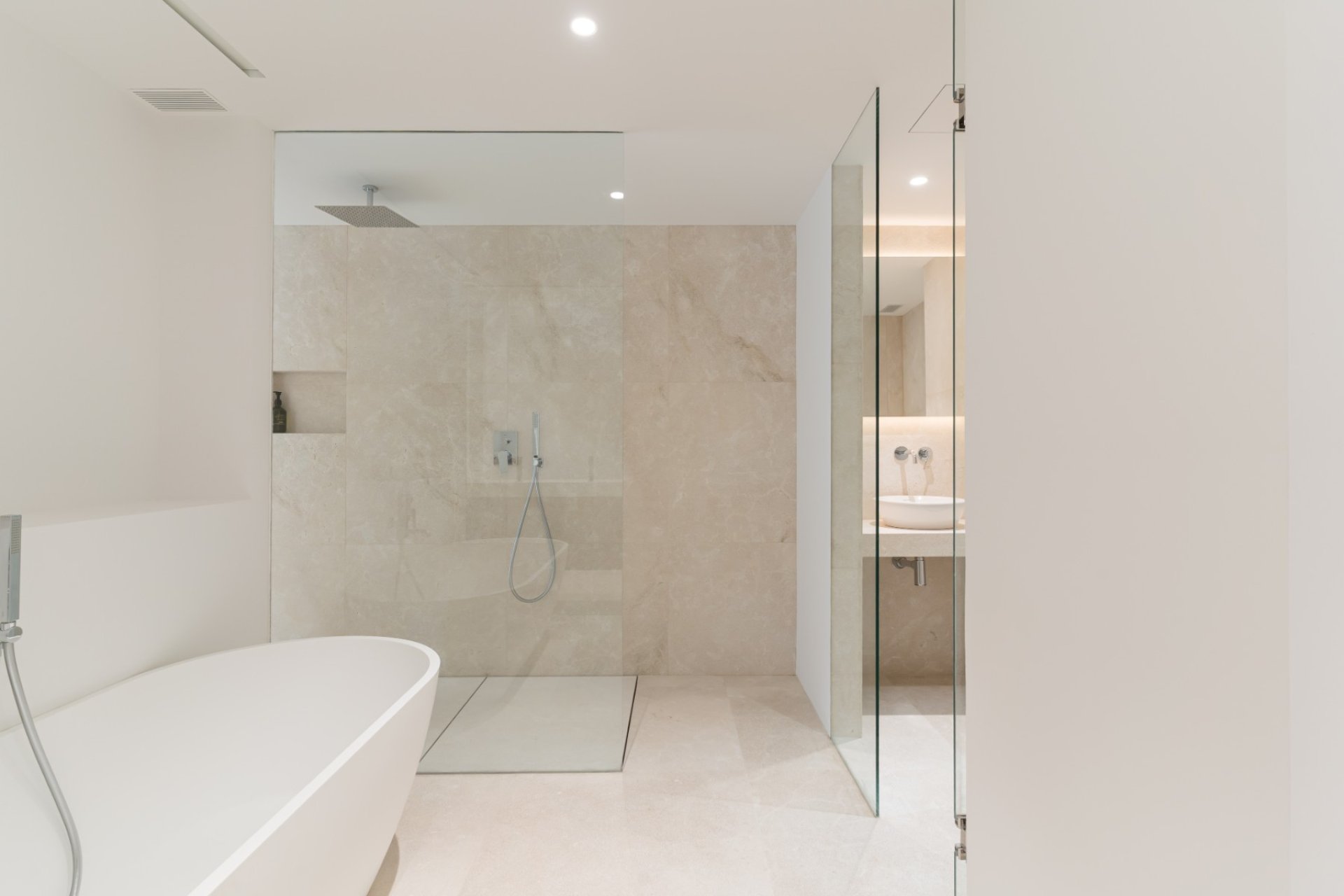 La planta superior está dedicada al descanso y la sofisticación. La suite principal es un refugio privado con un amplio vestidor y un baño privado estilo spa. Tres dormitorios dobles adicionales, cada uno con baño privado a medida, garantizan absoluta privacidad para la familia y los invitados.
