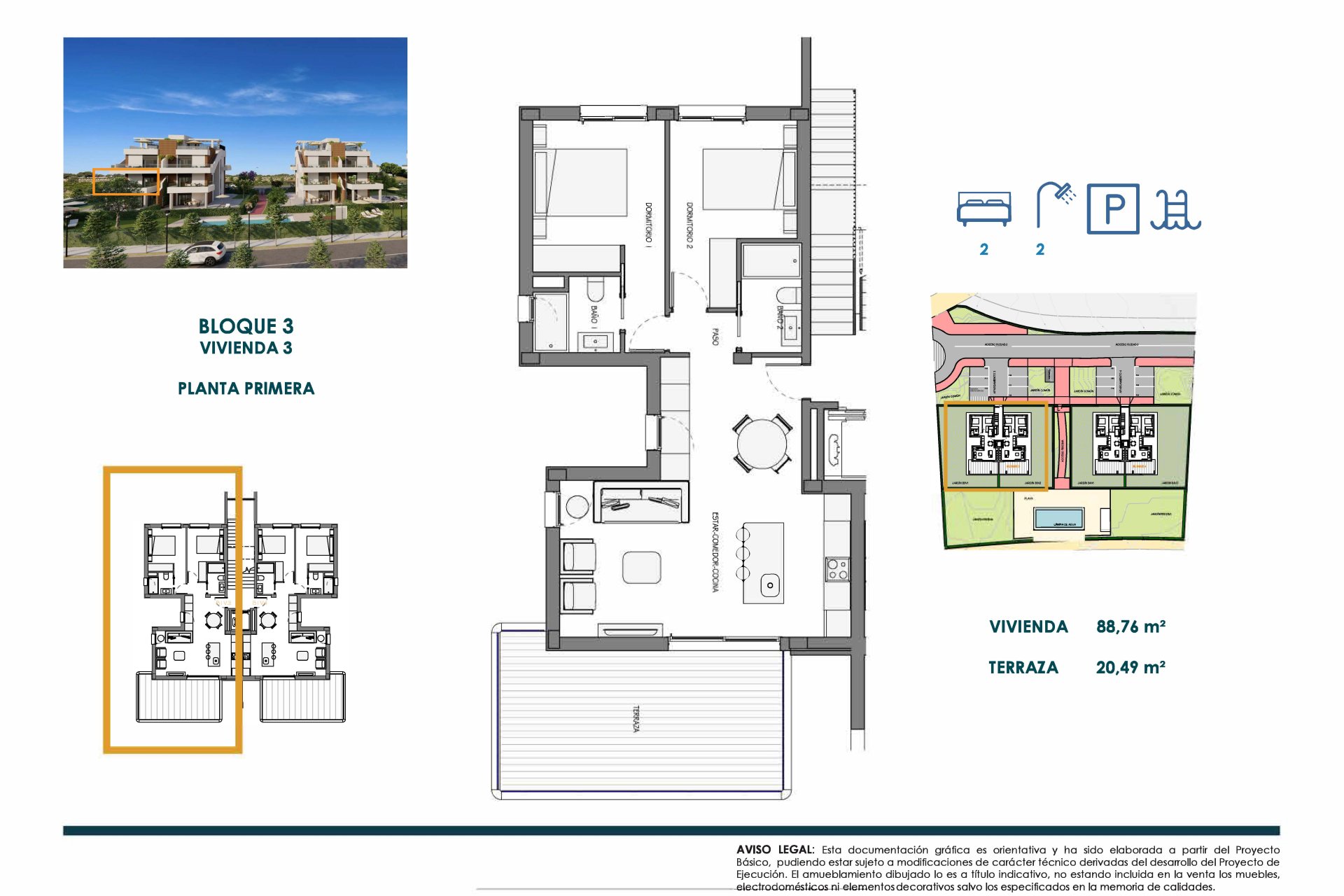 L'intérieur des logements est soigneusement conçu pour offrir confort et style. Les sols en grès cérame apportent une touche moderne et sont faciles à entretenir. Chaque propriété est équipée d'un interphone vidéo, garantissant sécurité et commodité. Les placards intégrés offrent un vaste espace de rangement, gardant les espaces ordonnés et fonctionnels. De plus, la pré-installation de la climatisation assure que les résidents puissent profiter d'un environnement agréable tout au long de l'année. Les logements disposent de deux chambres et deux salles de bains, offrant un espace adéquat pour les familles ou les couples.