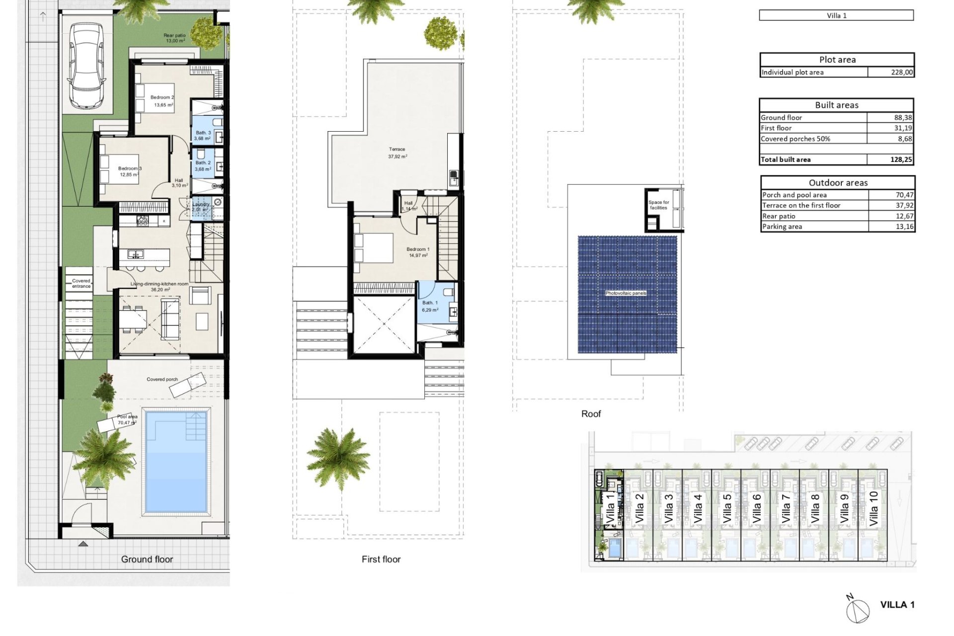 Le design extérieur de ces maisons individuelles à Los Nietos se distingue par son intégration avec l'environnement naturel. Chaque propriété dispose d'un jardin privé, parfait pour profiter du climat méditerranéen. De plus, les terrasses offrent un espace supplémentaire pour se détendre en plein air, permettant de profiter des vues et de l'environnement dans un cadre privé. L'inclusion d'une piscine privée dans chaque maison ajoute une touche de luxe et d'exclusivité, offrant un espace idéal pour les loisirs et le divertissement en plein air.