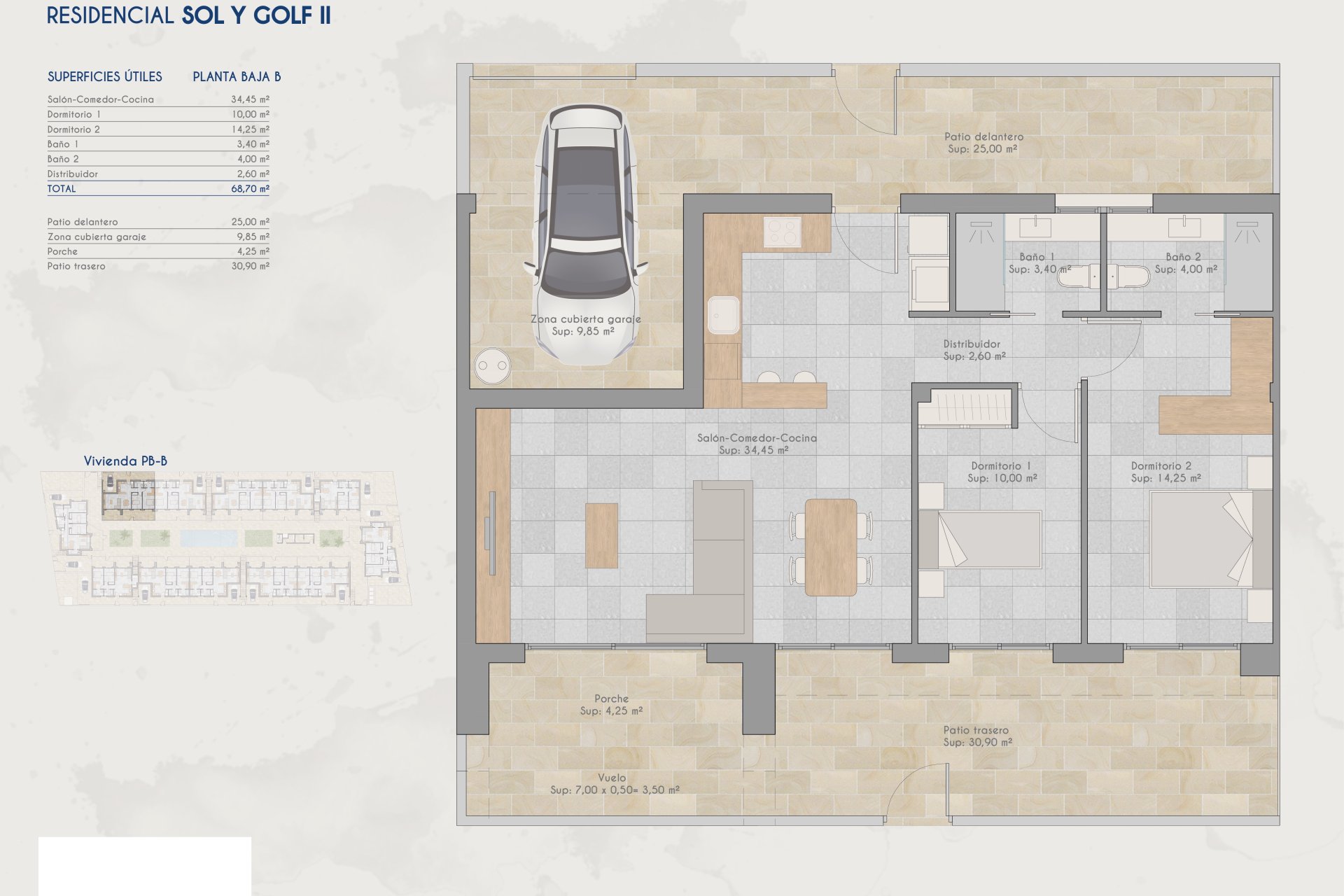 Les extérieurs de ces logements à Torre-Pacheco sont conçus pour profiter du climat méditerranéen. Chaque propriété dispose d'une terrasse privée, parfaite pour se détendre en plein air. De plus, les logements incluent un solarium, offrant un espace supplémentaire pour bronzer ou profiter des vues environnantes. La présence d'une pergola ajoute une touche d'élégance et de fonctionnalité, fournissant ombre et style aux espaces extérieurs.