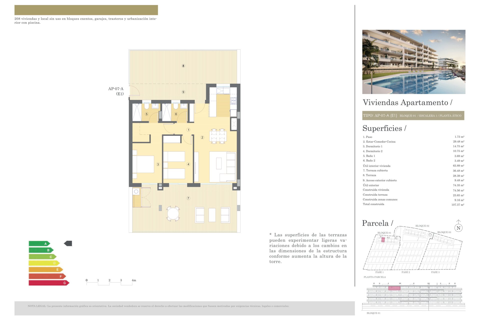 Les espaces communs de la résidence sont conçus pour le plaisir de toute la famille. Les jardins communautaires offrent un espace vert pour se détendre ou se promener, tandis que la piscine communautaire est parfaite pour se rafraîchir pendant les mois les plus chauds. Les plus petits pourront profiter de l'aire de jeux, conçue pour leur divertissement et leur sécurité. De plus, le complexe dispose d'un garage communautaire et de zones de stationnement, assurant que tous les résidents aient accès à un espace pour leur véhicule.