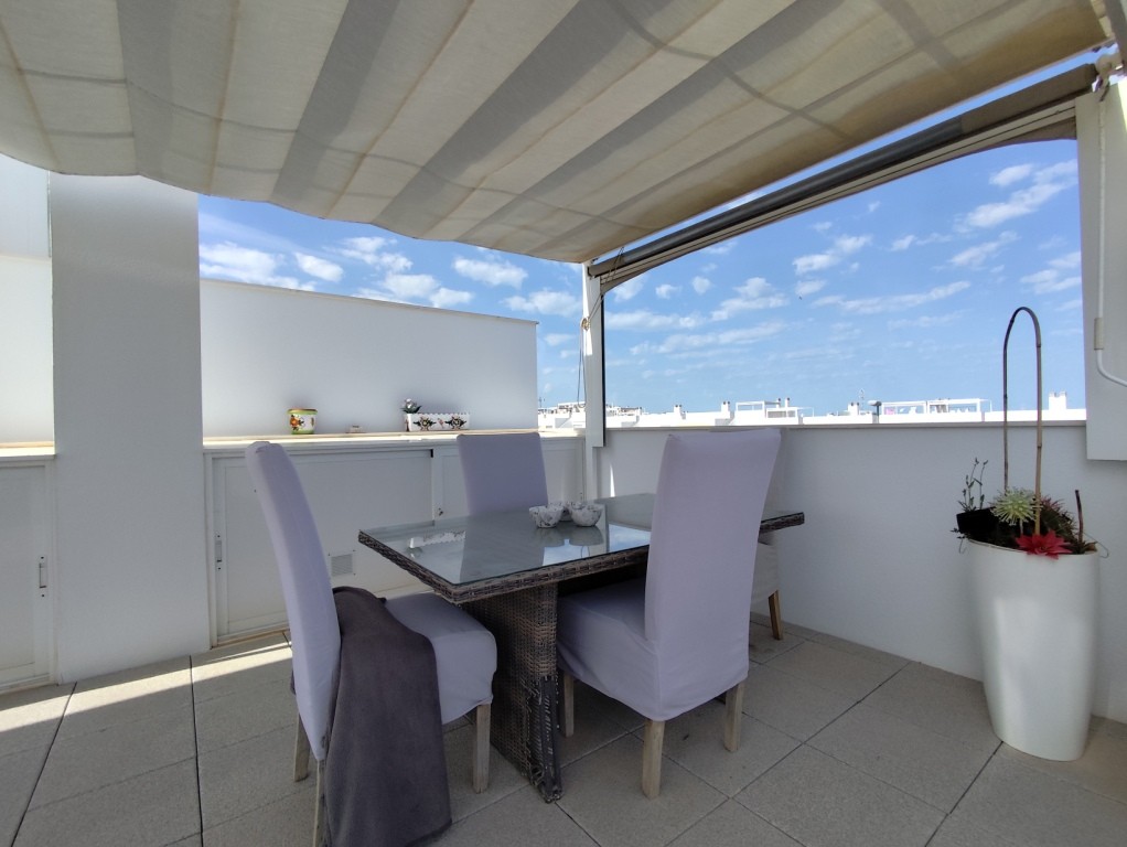 Penthouse. Modern Top Floor Apartment with Solarium & Jacuzzi in Vistabella Golf Location: Vistabella Golf, Costa Blanca South  This west-facing, two-bedroom top floor apartment in the popular Vistabella Golf urbanization offers comfort, space, and a prime location. Just a short 5-minute walk to bars, restaurants, and a supermarket, this property is ideally positioned for everyday convenience. By car, you're only 5 minutes from Los Montesinos, 10 minutes from Quesada and Benijófar, and about 20 minutes to the stunning beaches of the Costa Blanca. Built in 2019, the apartment features a bright and spacious living area with large sliding doors that open onto a generous terrace overlooking the immaculately maintained communal gardens. The fully equipped open-plan kitchen includes a large breakfast bar, perfect for informal meals or entertaining guests. There are two double bedrooms, both with fitted wardrobes. The master bedroom has its own en suite bathroom, and there’s a second modern family shower room as well. From the terrace, external stairs lead to your private solarium, where you'll find a jacuzzi—included in the sale—and a shaded area with sun blinds, creating an ideal setting for outdoor dining and relaxing while enjoying panoramic views and sunsets. Additional features include: Ducted air conditioning Four solar panels Partially furnished Communal swimming pool Allocated community parking space This well-maintained property offers a balanced lifestyle of comfort, relaxation, and accessibility — ideal as a holiday retreat, rental investment, or permanent home under the Spanish sun. Contact Interested in viewing or learning more€ Get in touch with Sunrisa Real Estate — we're happy to help you find your place in the sun! ☀️