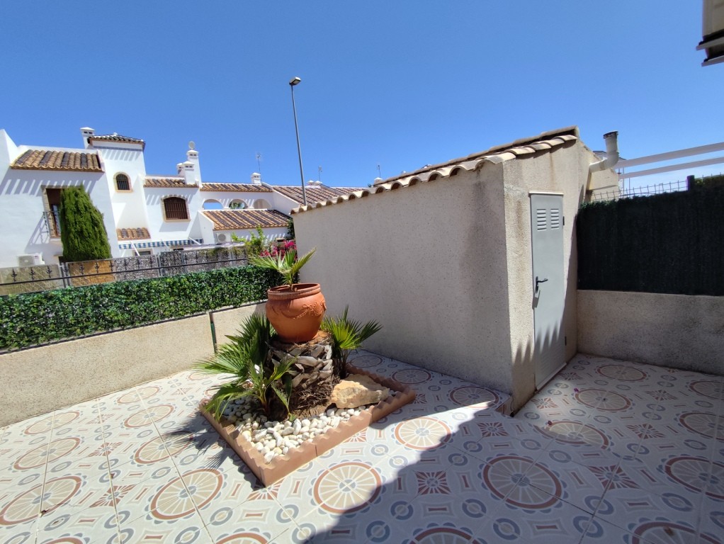 quad. Charming Quad Villa in Villamartin with Communal Pool This beautiful quad-style villa in Villamartin offers the perfect combination of comfort, outdoor living, and a prime location on the Costa Blanca. Recently refreshed with new paintwork and modernized details, it is ready for you to move in and enjoy. Property Features 3 bedrooms, 2 bathrooms (one newly renovated) Spacious living area with pellet stove and open-plan kitchen Fully equipped kitchen with modern appliances Large L-shaped terrace with lounge corner and outdoor dining area Private garden and parking on the plot (or on the street) First-floor terrace, ideal for relaxing or sunbathing Outdoor storage on the terrace and separate indoor laundry room Air conditioning, manual shutters, security door, and new interior doors on the ground floor Access to a beautifully maintained communal swimming pool Location Situated in the sought-after area of Villamartin, this property is just a short distance from golf courses, shopping centers, international restaurants, and the famous Villamartin Plaza. The stunning sandy beaches of Orihuela Costa are only a few minutes’ drive away, while Alicante and Murcia airports are both easily accessible. This home is perfect as a permanent residence, a holiday home, or an investment with excellent rental potential. Contact Contact us today for more information or to arrange a viewing.
