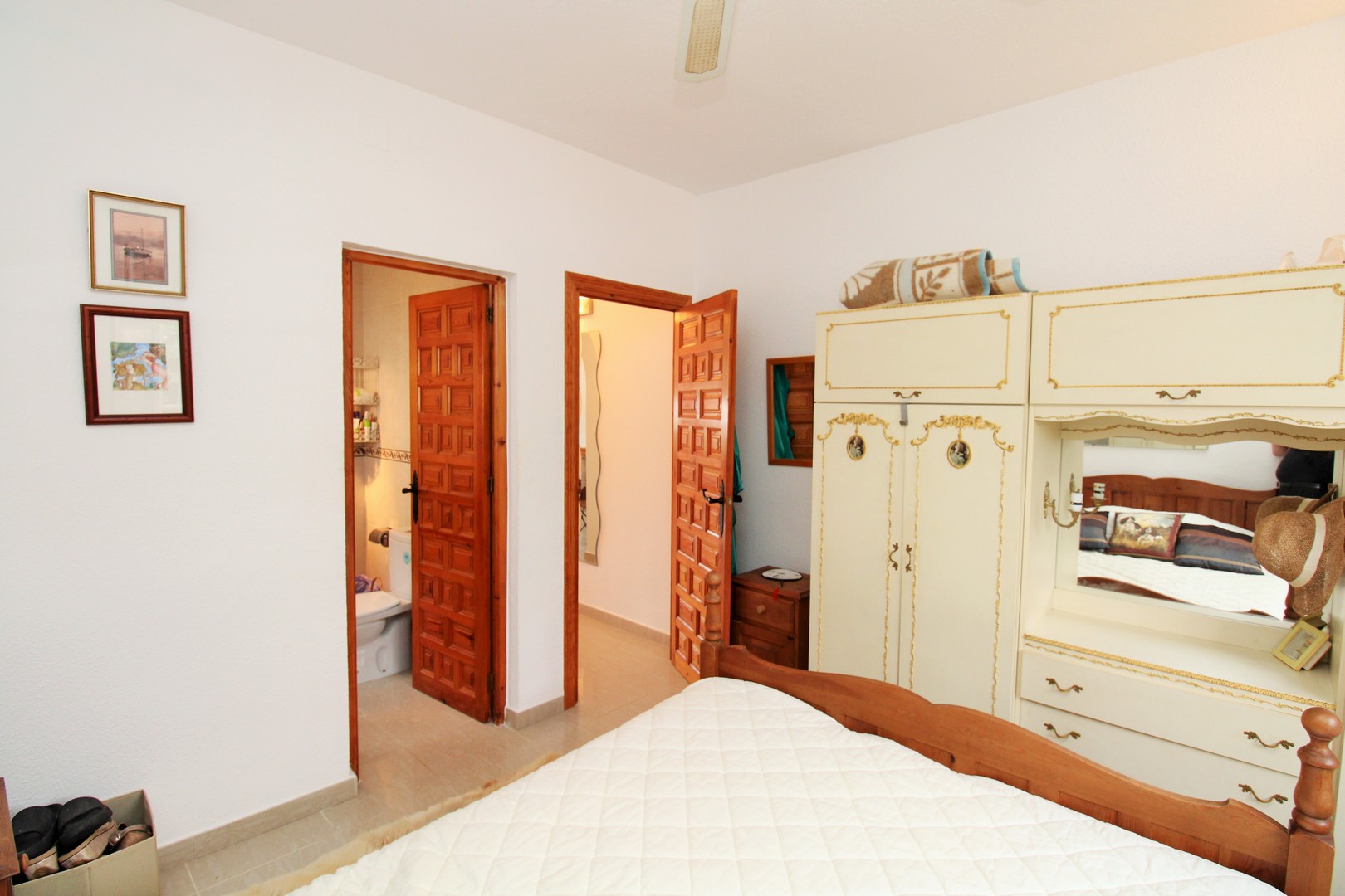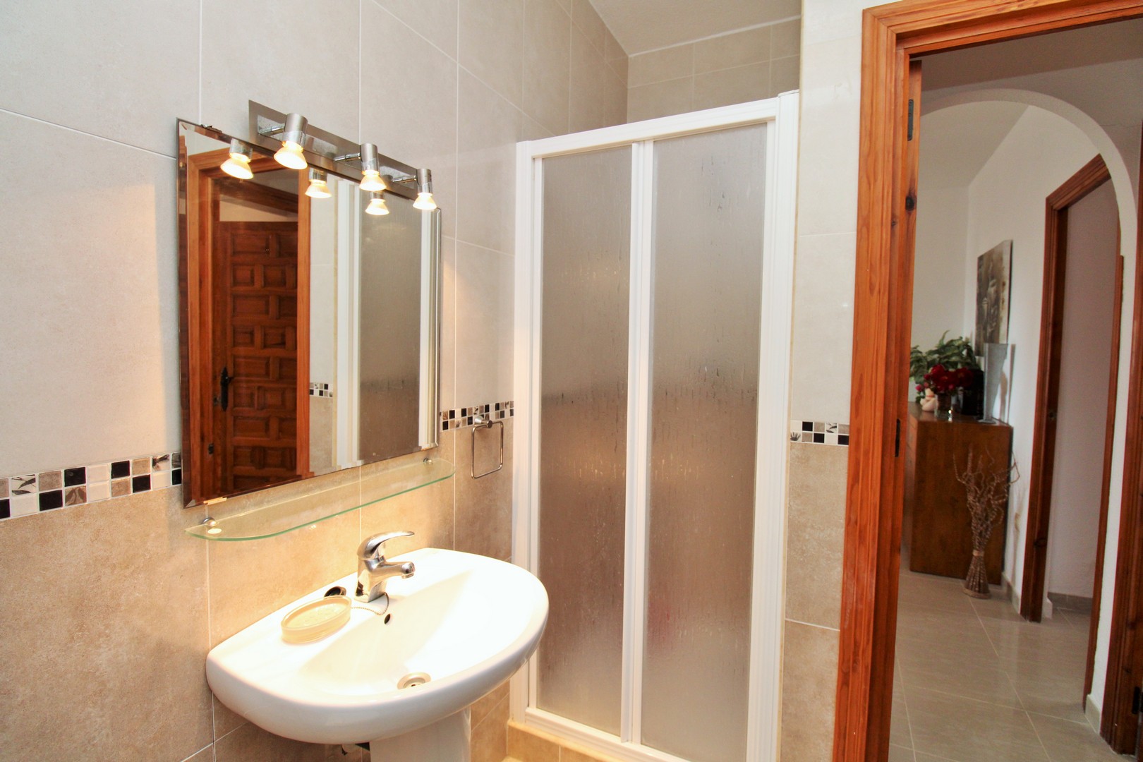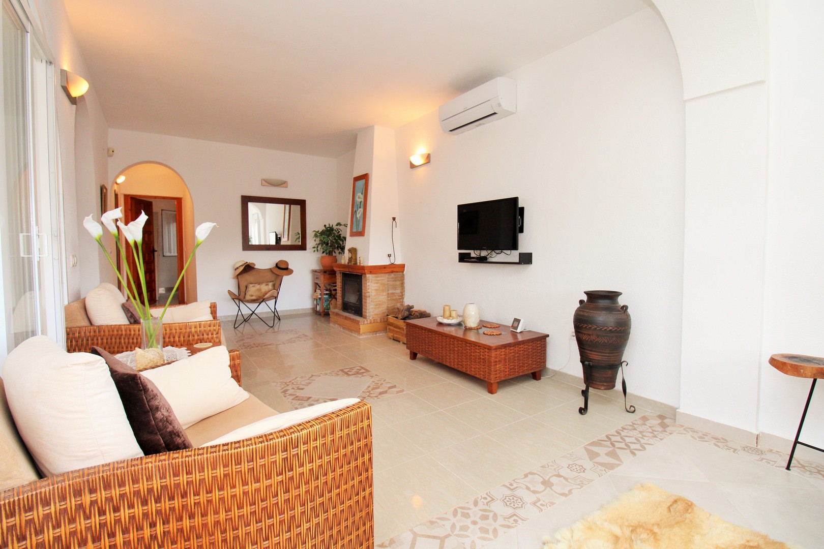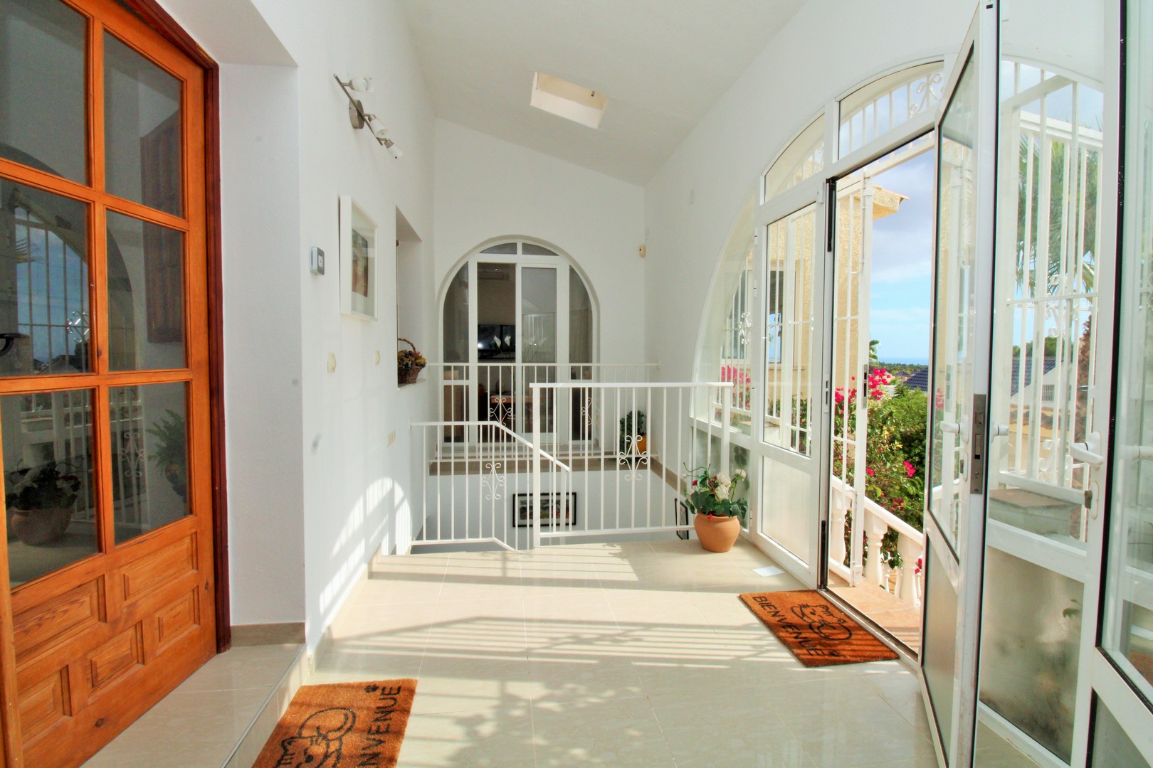 This well-presented four-bedroom detached villa with private swimming pool is situated in the Blue Lagoon area of Villamartin. Set on a 430m2 plot, the property offers the convenience of most of the living space arranged on a single level. Outside, there is a generous swimming pool, multiple terrace areas, a garage, and a roof solarium with open views towards the sea and countryside. The villa is ideally located just 500 metres from local amenities, including a selection of bars, restaurants, and shops. The main floor features an entrance porch leading into the dining area with a modern open-plan kitchen, a bright and spacious living room with fireplace, three double bedrooms with fitted wardrobes, and a family bathroom with walk-in shower. The master bedroom includes its own en-suite bathroom. A staircase from the entrance foyer leads down to the underbuild, which provides a large double bedroom with en-suite bathroom – an ideal space for guests. The villa also offers several outdoor terraces designed for privacy, along with a barbecue area, utility room, and views to the sea. The property has been carefully maintained by the current owners and is offered for sale furnished, with white goods and air-conditioning included. This villa makes an excellent permanent residence or holiday home, with golf courses at Villamartin, Campoamor, and Las Ramblas all close by. Villamartin Plaza is around a 15–20 minute walk, while the beaches of the Orihuela Costa and the Zenia Boulevard shopping centre are just a 10-minute drive. Viewings are strongly recommended.