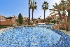 | South-facing 2-bedroom, 2-bathroom ground floor apartment with exceptional 95m2 private garden in the gated community of Residencial Punta Marina, Punta Prima. This attractive apartment blends rustic Spanish charm with the comfort of a well-maintained, secure complex. Located on the ground floor, it benefits from a substantial private garden - one of the largest in the development - providing an impressive outdoor space rarely available in this area. The property features a spacious lounge and dining area, a separate fitted kitchen with adjoining utility room, two double bedrooms with fitted wardrobes, and a family bathroom with walk-in shower. The master bedroom includes its own en-suite. French doors from the living area open onto a covered porch, leading down to the landscaped private garden with lawn and mature greenery. Maintenance of the garden is conveniently included in the community fees. Residencial Punta Marina offers residents access to a communal swimming pool set just beside the property, as well as off-road communal parking. The location is superb: only 400 metres from Punta Marina Commercial Centre with its supermarket, shops, cafés, and restaurants, and just 900 metres from the seafront. Sold furnished with white goods and air-conditioning. Properties with such generous outdoor space, within easy walking distance of all amenities, are rarely available.