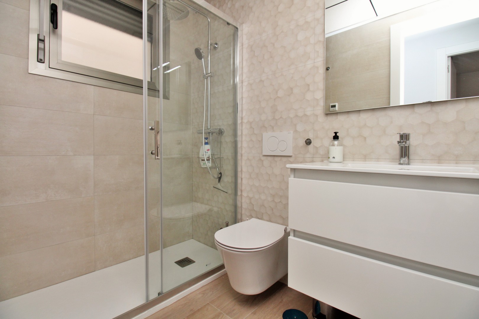 This luxurious and modern 3 bedroom, 3 bathroom detached villa is located in the Pau 26 area of Villamartin. Completed in 2023, this beautiful villa offers a private swimming pool, off-road parking with large L shape terrace, a front balcony, and a massive roof solarium offering views of the sea, and the Torrevieja salt lakes. The ground floor comprises of a bright and airy lounge-dining area with a bespoke modern kitchen with built-in appliances (oven, microwave, dishwasher, fridge-freezer...), a downstairs bedroom with fitted wardrobes (currently used as a study/2nd lounge area), and a downstairs bathroom with walk-in shower. Large sliding doors from the living area takes you directly to the pool area. Upstairs there are 2 double bedrooms with fitted wardrobes, both of them offering en-suite bathrooms with walk-in showers, plus access to the front balcony. From the landing area, you can access the massive roof solarium, offering great views of the Torrevieja salt lakes, sea, and surrounding areas. The property is sold with high quality furniture, white goods, and benefits from other extras including; underfloor heating in all bathrooms, ducted air-conditioning throughout, electric blinds, LED lighting, and a solar panel for hot water. Located just 1km from an ALDI supermarket, and the Via Park III commercial centre, offering a range of bars, restaurants, and other services including a pharmacy. The Villamartin Plaza and golf course is just a short drive away, along with the blue flag beaches of the Orihuela Costa, and the popular Zenia Boulevard shopping mall.