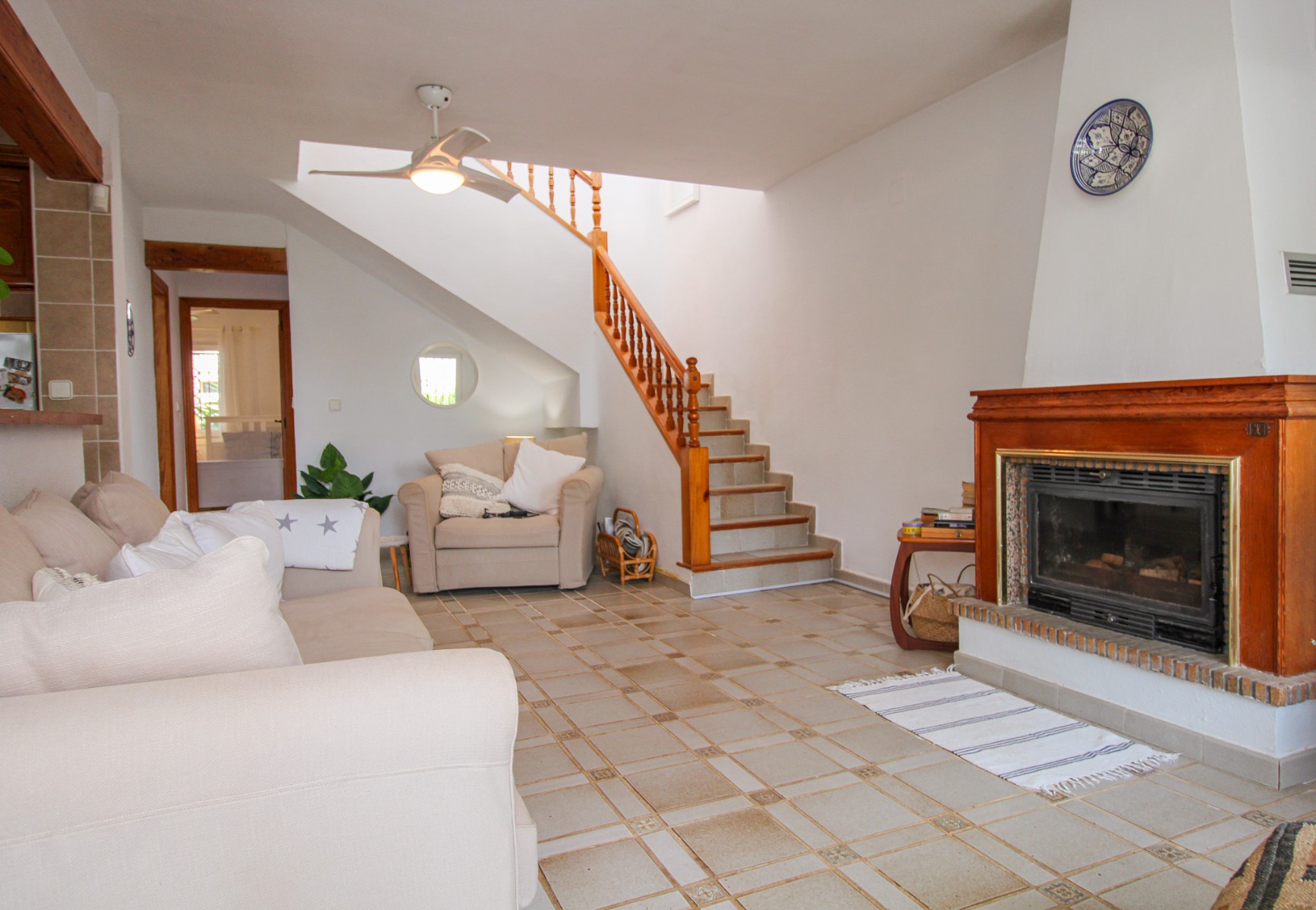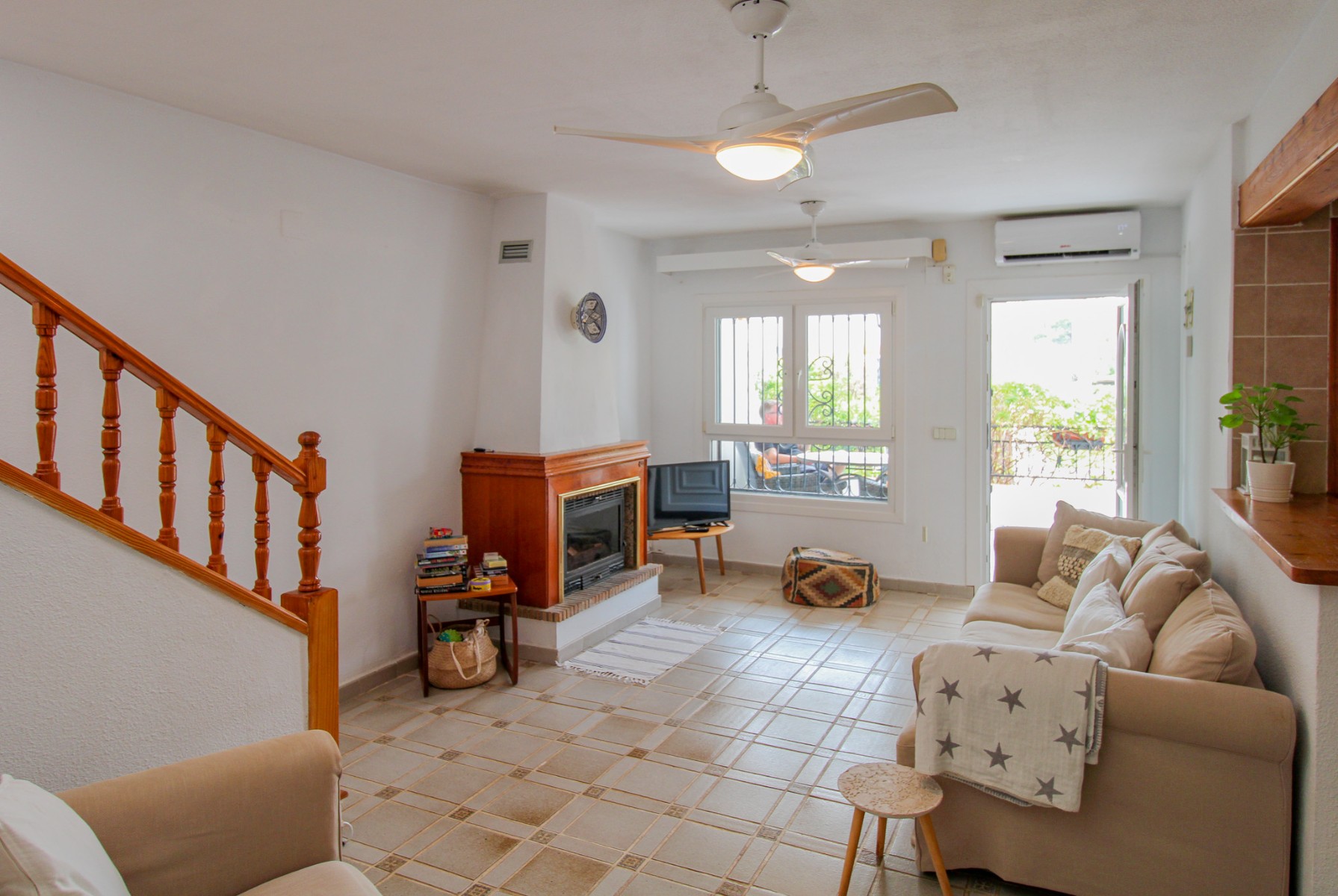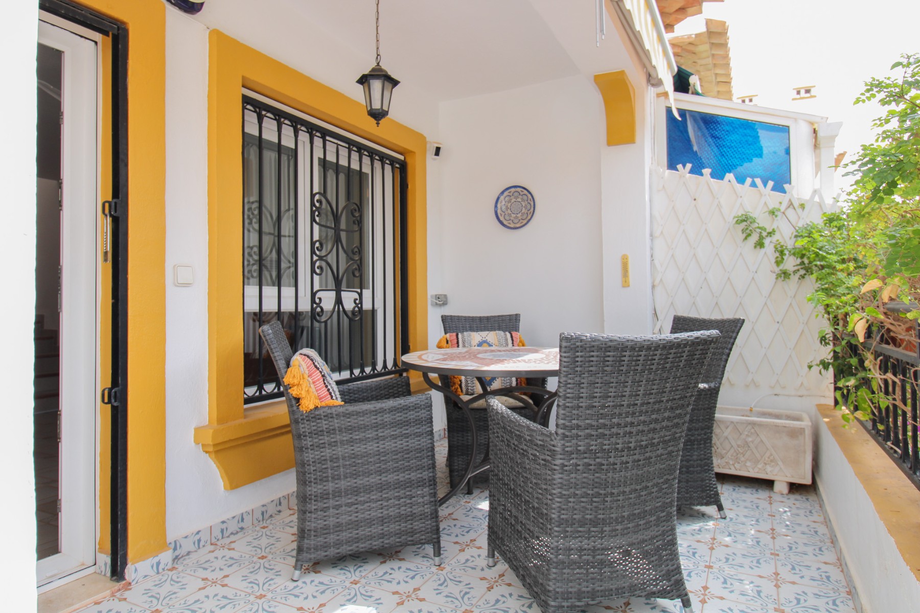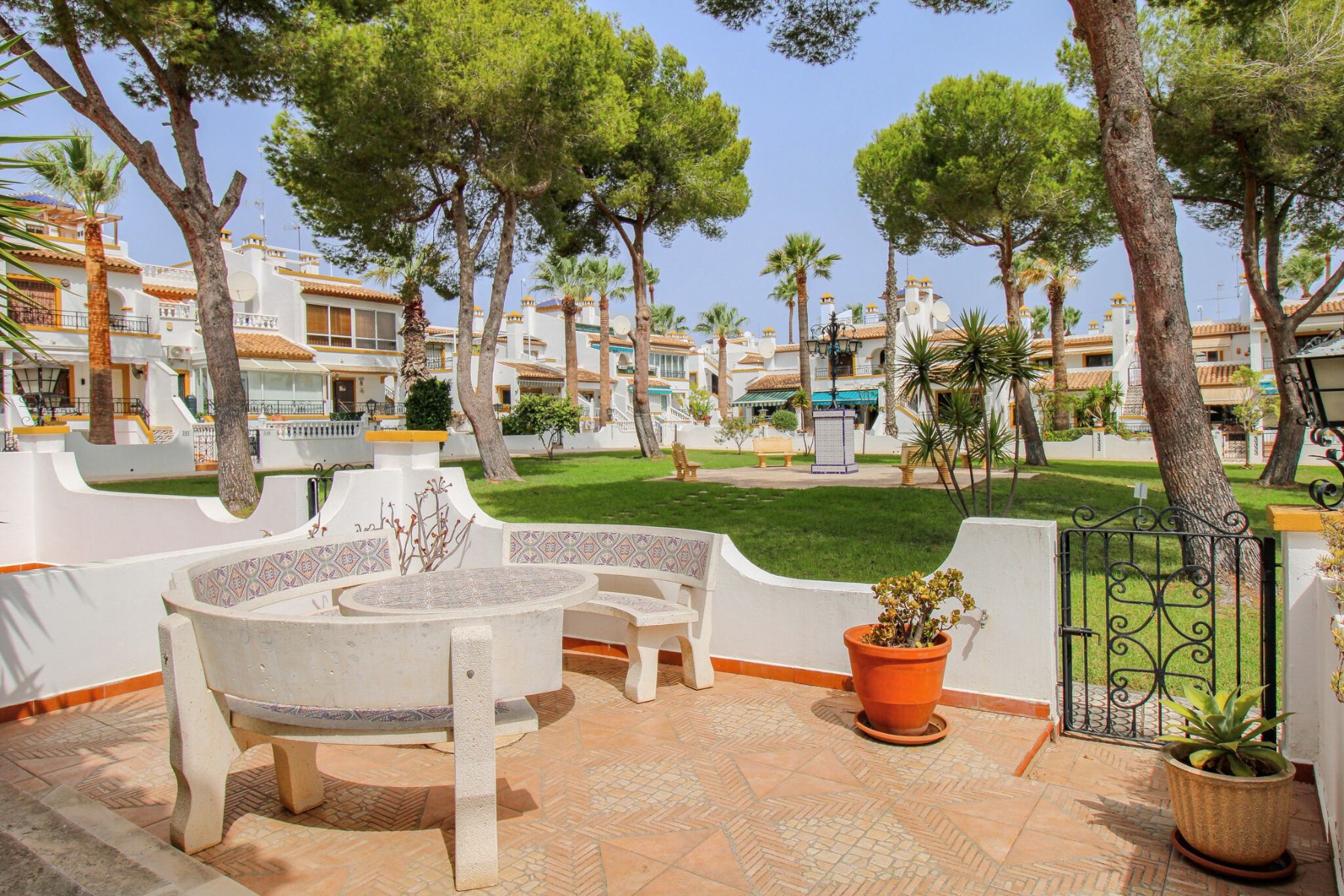 This beautifully presented Buhardilla style townhouse is located in the highly desirable urbanisation of Valencias II, Villamartin. Perfectly positioned just steps away from the stunning communal pool and gardens, the home offers both privacy and easy access to the best of community living. The property boasts spacious front and rear terraces with open views over the lush green areas, ideal for relaxing, entertaining, or enjoying the Mediterranean sunshine. Inside, you’ll find a welcoming lounge and dining area with a cosy fireplace, complemented by air conditioning and ceiling fans for comfortable living all year round. The home has been thoughtfully decorated, blending modern touches with the charm of traditional Spanish style. The layout comprises: 2 double bedrooms on the ground floor, both with fitted wardrobes, plus a family bathroom. On the upper level, the master suite enjoys an en-suite bathroom and access to a private terrace overlooking the pool. Other features include community parking and easy access to the well maintained communal areas with palm trees, fountains, and landscaped gardens. The unbeatable location means you’re within walking distance of the famous Villamartin Plaza, the golf course, and the popular Los Dolses commercial centre, offering supermarkets, shops, bars, and restaurants. A short drive brings you to the renowned Zenia Boulevard shopping centre and the beautiful golden beaches of Orihuela Costa. Both Alicante and Murcia airports are conveniently around 45 minutes away. This is a fantastic opportunity to secure a home in one of Villamartin’s most sought after urbanisations.
