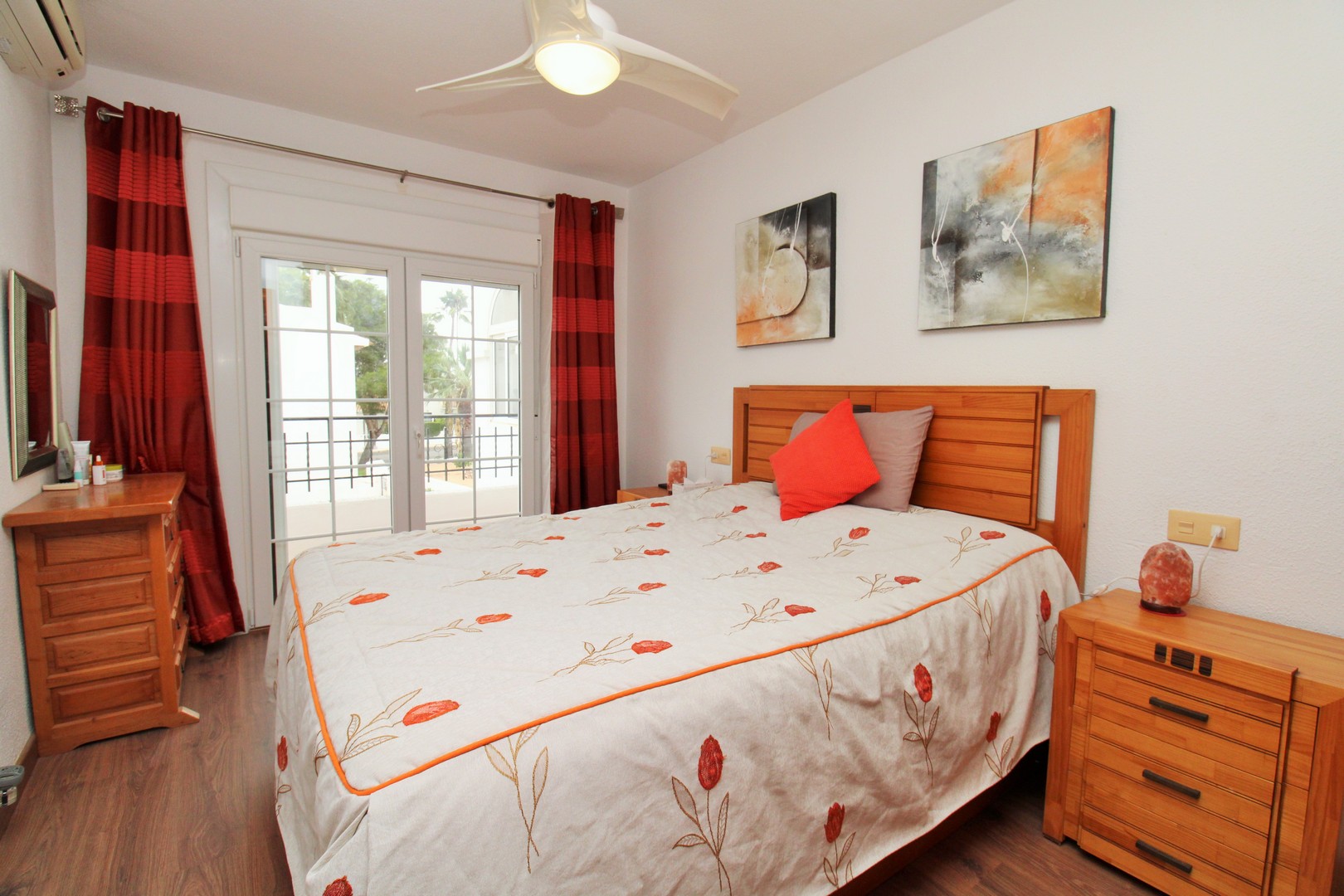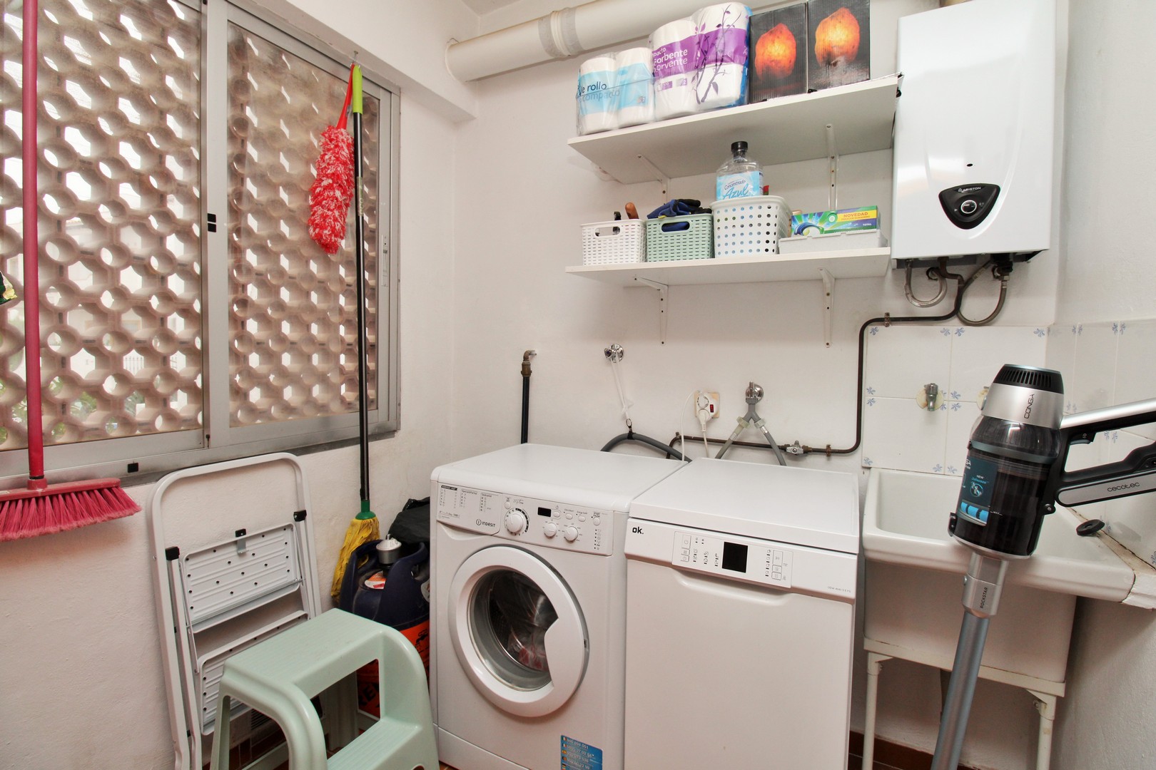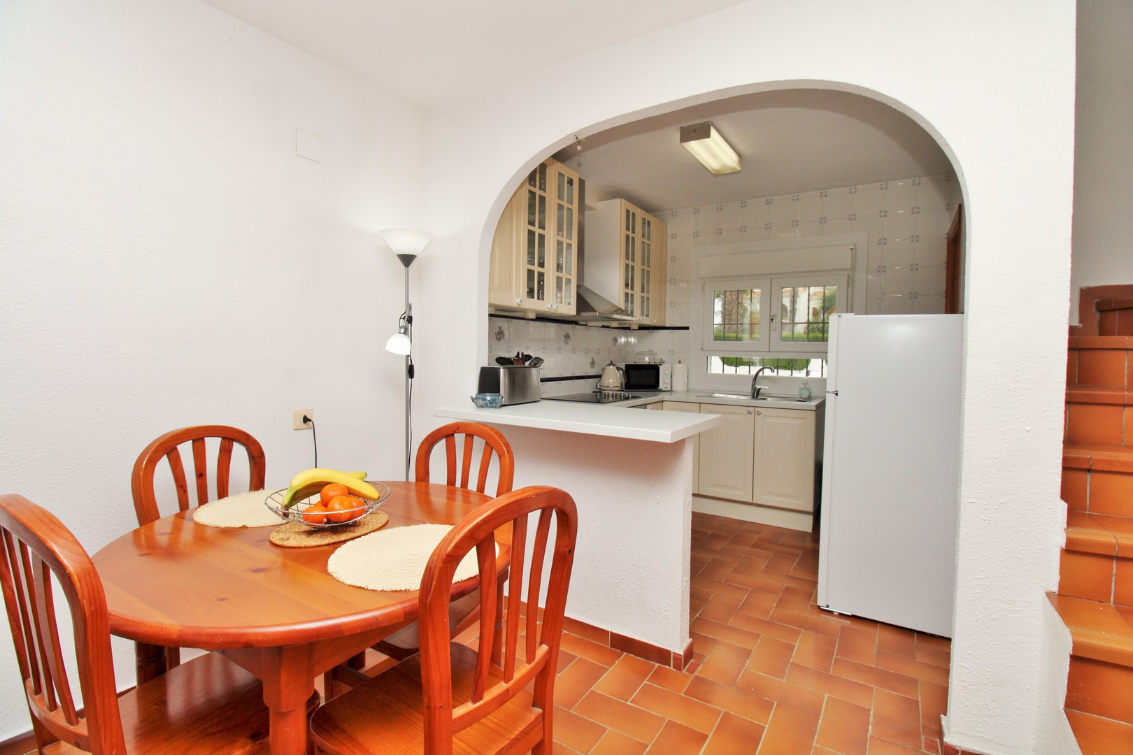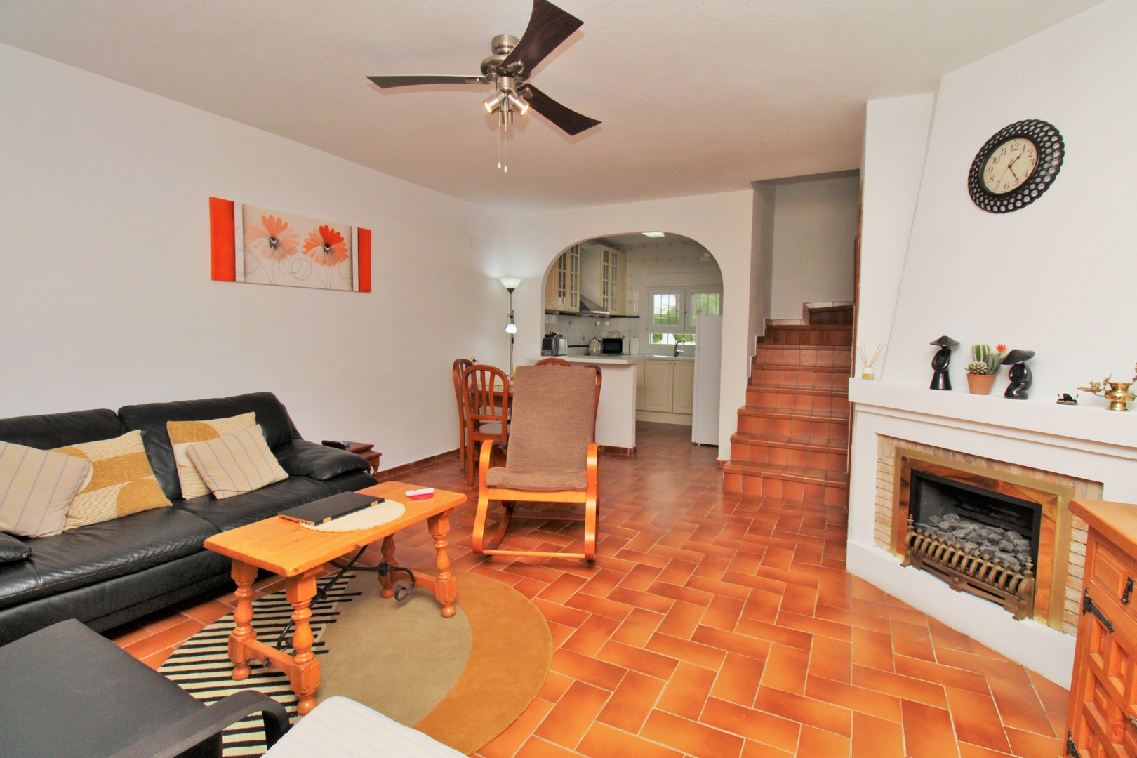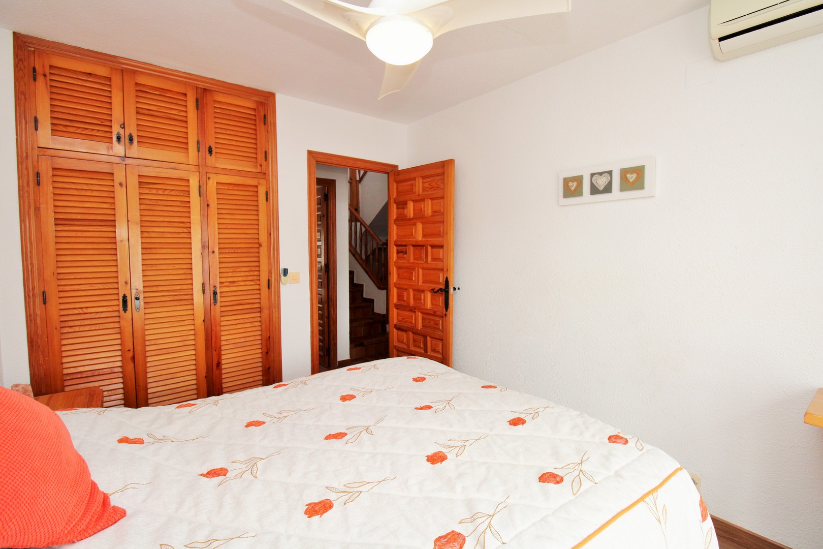 A lovely South-facing Sofia style townhouse situated in the sought-after urbanisation of Verdemar III in Villamartin. The property enjoys a superb outlook towards the main water fountain of Verdemar III, and offers generous outdoor space, including front and rear gardens, a covered terrace, and a private roof solarium with sea views. The ground floor features a spacious lounge–dining area with guest WC, an open-plan kitchen to the rear, and a utility room with direct access to the back garden. Upstairs, there are two double bedrooms with fitted wardrobes and a family bathroom. The main bedroom benefits from a private South-facing balcony overlooking the central fountain of Verdemar III. Internal stairs from the landing lead to the roof solarium, which offers far-reaching views of the sea. The property is sold furnished and includes air-conditioning. Verdemar III is renowned for its beautifully landscaped communal gardens and two exceptional swimming pools. The grounds feature charming water features and ponds, all carefully maintained. Ideally located less than 800 metres from La Fuente commercial centre—with its wide choice of restaurants, bars, and two supermarkets—the property is also just a few minutes’ drive from the golf courses of Villamartín, Campoamor, and Las Ramblas. The beaches and Zenia Boulevard shopping centre can be reached in under ten minutes by car.