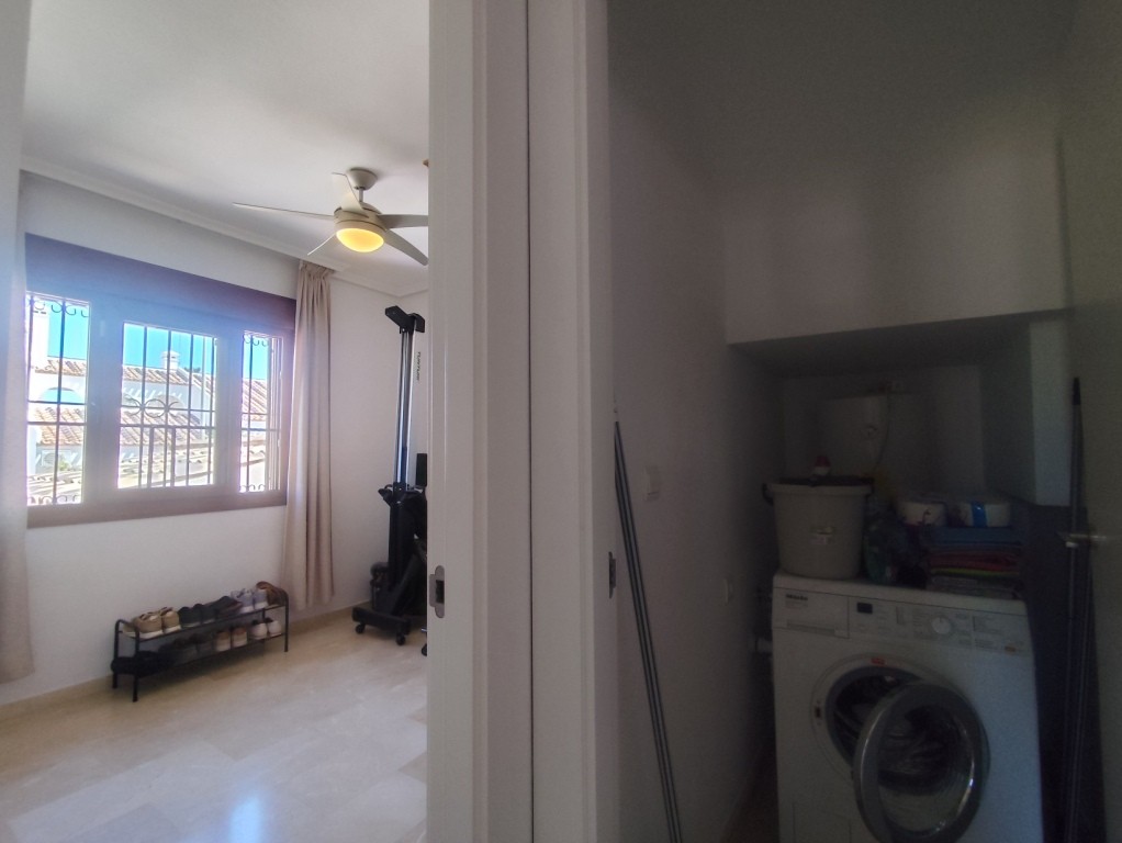 quad. Charming Quad Villa in Villamartin with Communal Pool This beautiful quad-style villa in Villamartin offers the perfect combination of comfort, outdoor living, and a prime location on the Costa Blanca. Recently refreshed with new paintwork and modernized details, it is ready for you to move in and enjoy. Property Features 3 bedrooms, 2 bathrooms (one newly renovated) Spacious living area with pellet stove and open-plan kitchen Fully equipped kitchen with modern appliances Large L-shaped terrace with lounge corner and outdoor dining area Private garden and parking on the plot (or on the street) First-floor terrace, ideal for relaxing or sunbathing Outdoor storage on the terrace and separate indoor laundry room Air conditioning, manual shutters, security door, and new interior doors on the ground floor Access to a beautifully maintained communal swimming pool Location Situated in the sought-after area of Villamartin, this property is just a short distance from golf courses, shopping centers, international restaurants, and the famous Villamartin Plaza. The stunning sandy beaches of Orihuela Costa are only a few minutes’ drive away, while Alicante and Murcia airports are both easily accessible. This home is perfect as a permanent residence, a holiday home, or an investment with excellent rental potential. Contact Contact us today for more information or to arrange a viewing.