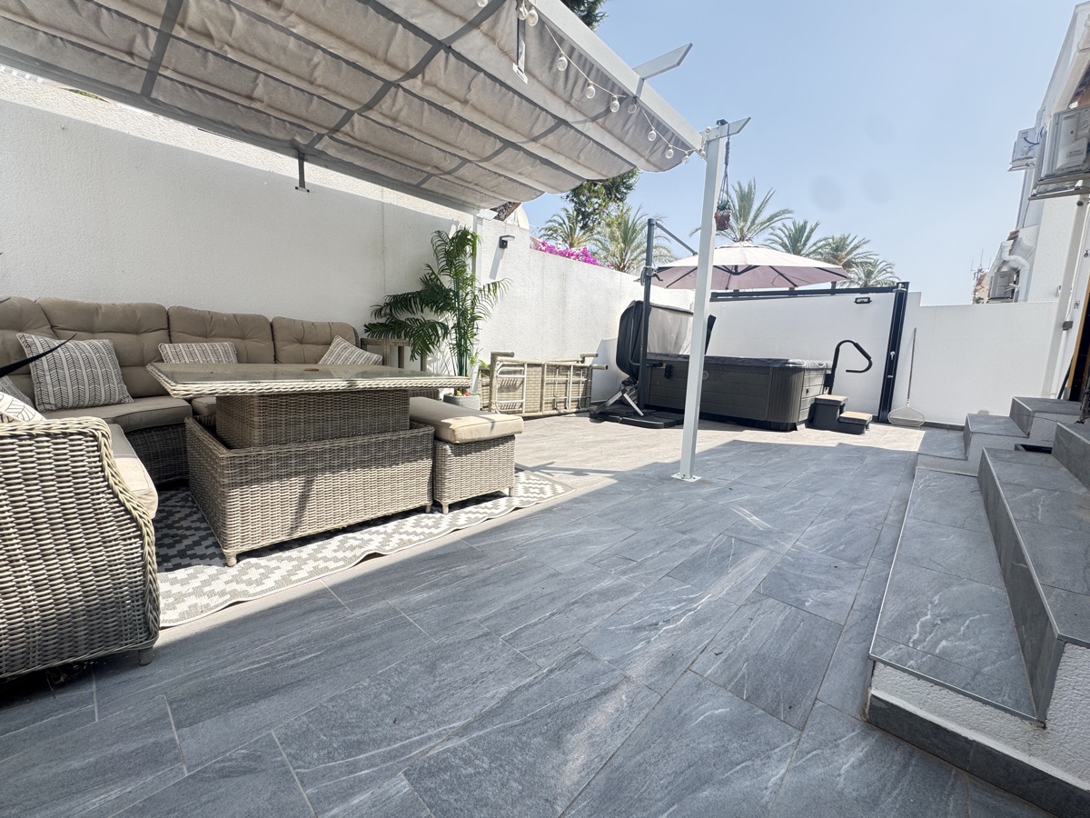 A Breath-taking South-Facing Villa in La Rioja, Orihuela Costa Discover the epitome of Mediterranean living in this stunning 3-bedroom detached villa, meticulously renovated to perfection in the sought-after community of Rioja I, La Rioja, Los Dolses, Orihuela Costa. Nestled in a tranquil neighbourhood, this beautiful property offers the perfect balance of peace and convenience. Residents can enjoy a leisurely stroll to two nearby commercial centres, featuring an array of shops, bars, restaurants, and essential services, including a supermarket with pharmacy. Fantastic Living Spaces offering - Bright and airy lounge area seamlessly connected to an extended, open-plan American-style kitchen - Additional living area perfect for relaxation or entertainment - Downstairs double bedroom with fitted wardrobes and family bathroom - Two upstairs bedrooms, each with en-suite bathroom and walk-in wardrobe Idyllic Outdoor Oasis offering - - Wellis hot tub with outdoor seating area and retractable awning - South-facing balcony with breath-taking sea views - Covered carport for secure parking - Enclosed porch providing a welcoming entrance Additional Features include.. - Air-conditioning throughout for year-round comfort - Gas central heating via gas mains for efficient warmth - Beautiful communal pool* for residents to enjoy Location Location Location - Walking distance to La Rioja and Los Dolses commercial centres - 20-minute walk to Villamartin Plaza and La Fuente commercial centre - 5-minute drive to sandy blue flag beaches and Zenia Boulevard shopping mall This exquisite villa offers the ultimate Mediterranean lifestyle, blending tranquillity, luxury, and convenience. Don't miss the opportunity to make this stunning property your dream home. For more information or to arrange a viewing Contact us today!