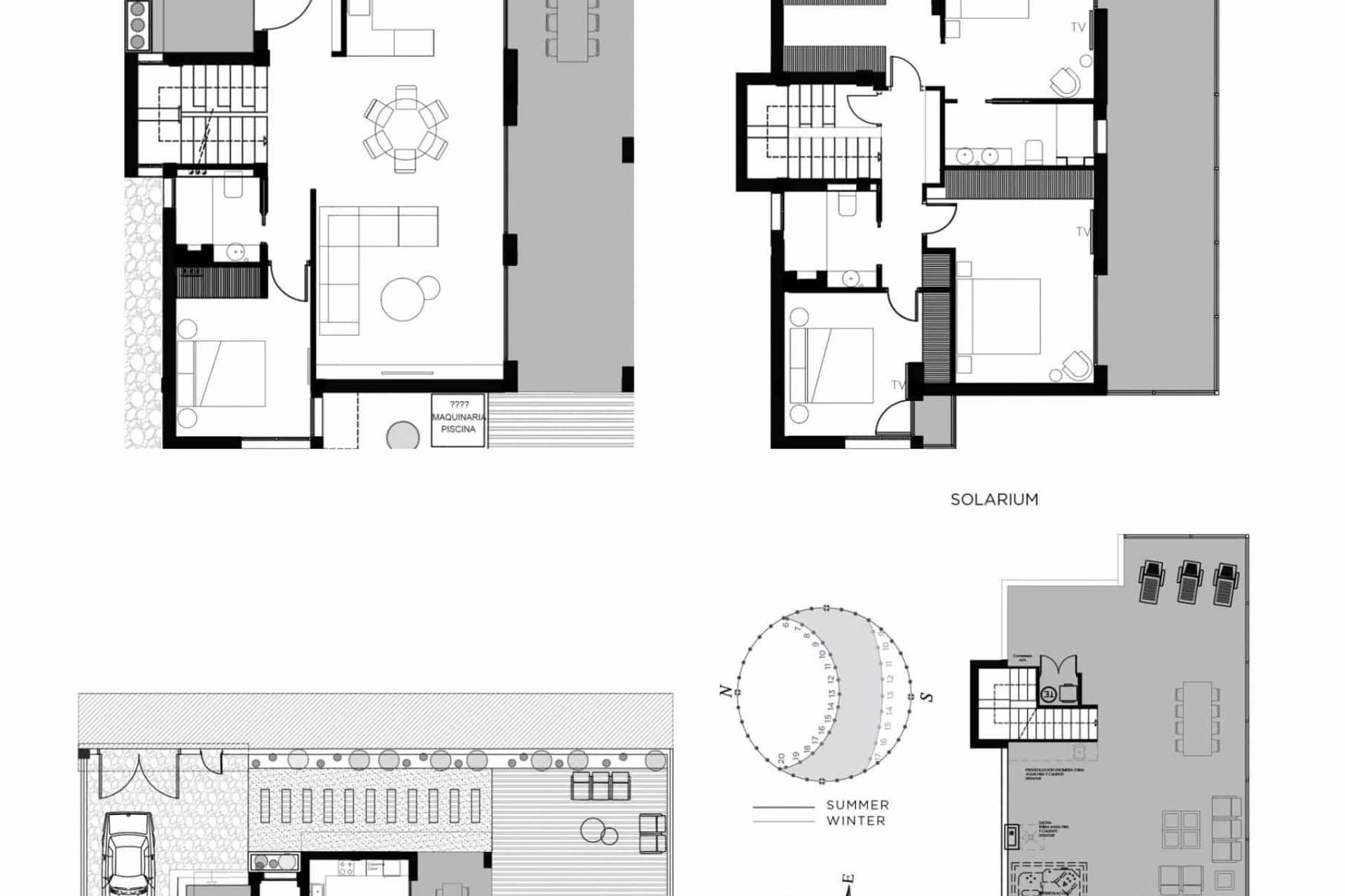 De buitenkant van deze woningen is een ware oase van ontspanning. Elke woning heeft een privé tuin, perfect om te genieten van het mediterrane klimaat. De aanwezigheid van een privézwembad voegt een vleugje luxe toe, waardoor je kunt afkoelen op de warmste dagen. Bovendien bieden de terrassen en het solarium extra buitenruimtes voor recreatie, ideaal voor familiebijeenkomsten of gewoon om van een rustig moment te genieten. De pergola biedt schaduw en een gezellige plek om te ontspannen tijdens de intense zonuren.