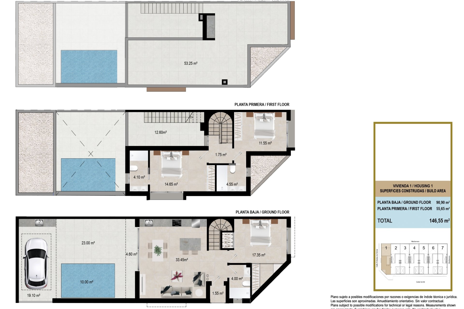 Gelegen in de charmante stad San Javier, biedt deze woonwijk een exclusieve selectie van rijtjeshuizen. Elke woning is ontworpen om maximaal comfort en functionaliteit te bieden, ideaal voor degenen die een huis zoeken op een geweldige locatie. De nabijheid van de luchthaven, op slechts 35 km afstand, voegt aanzienlijke waarde toe en vergemakkelijkt het reizen voor frequente reizigers. De typologie van de rijtjeshuizen zorgt voor een unieke woonervaring, die privacy en gemeenschap combineert in een uitnodigende omgeving.