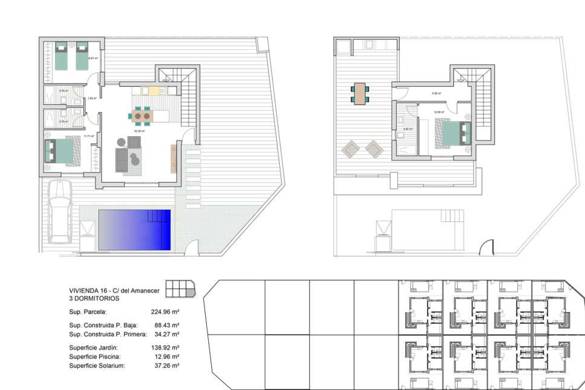 The exteriors of these independent homes in Torre-Pacheco are designed to enjoy the Mediterranean climate. Each property features a private garden, ideal for creating a personal green space or enjoying the outdoors. Additionally, the terraces offer a perfect place to relax or share moments with friends and family. The homes also include a solarium, providing additional space for sunbathing or enjoying the views. The presence of a private pool in each home adds a touch of luxury, allowing for refreshing dips on the hottest days.
