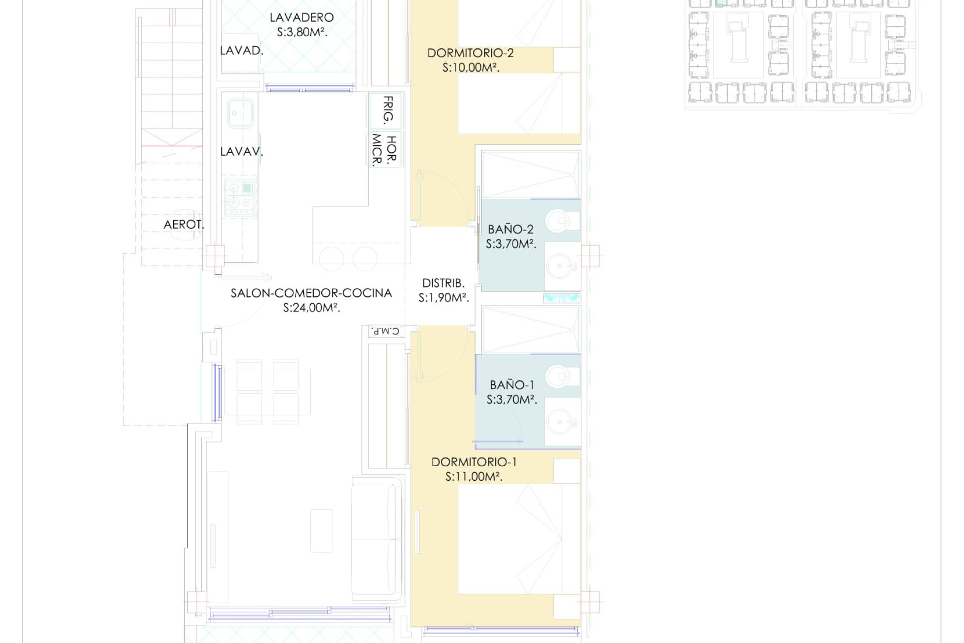 Located in the charming town of Torrevieja, this residential complex offers a selection of 42 properties including bungalows, high-bungalows, and low-bungalows. The location is ideal for those looking to enjoy life near the sea, as it is just 3.5 km from the coast. Additionally, the nearest airport is 21 km away, making access easy for frequent travelers. The homes are designed to offer comfort and functionality, with options of 2 and 3 bedrooms and 2 bathrooms, catering to different family needs.