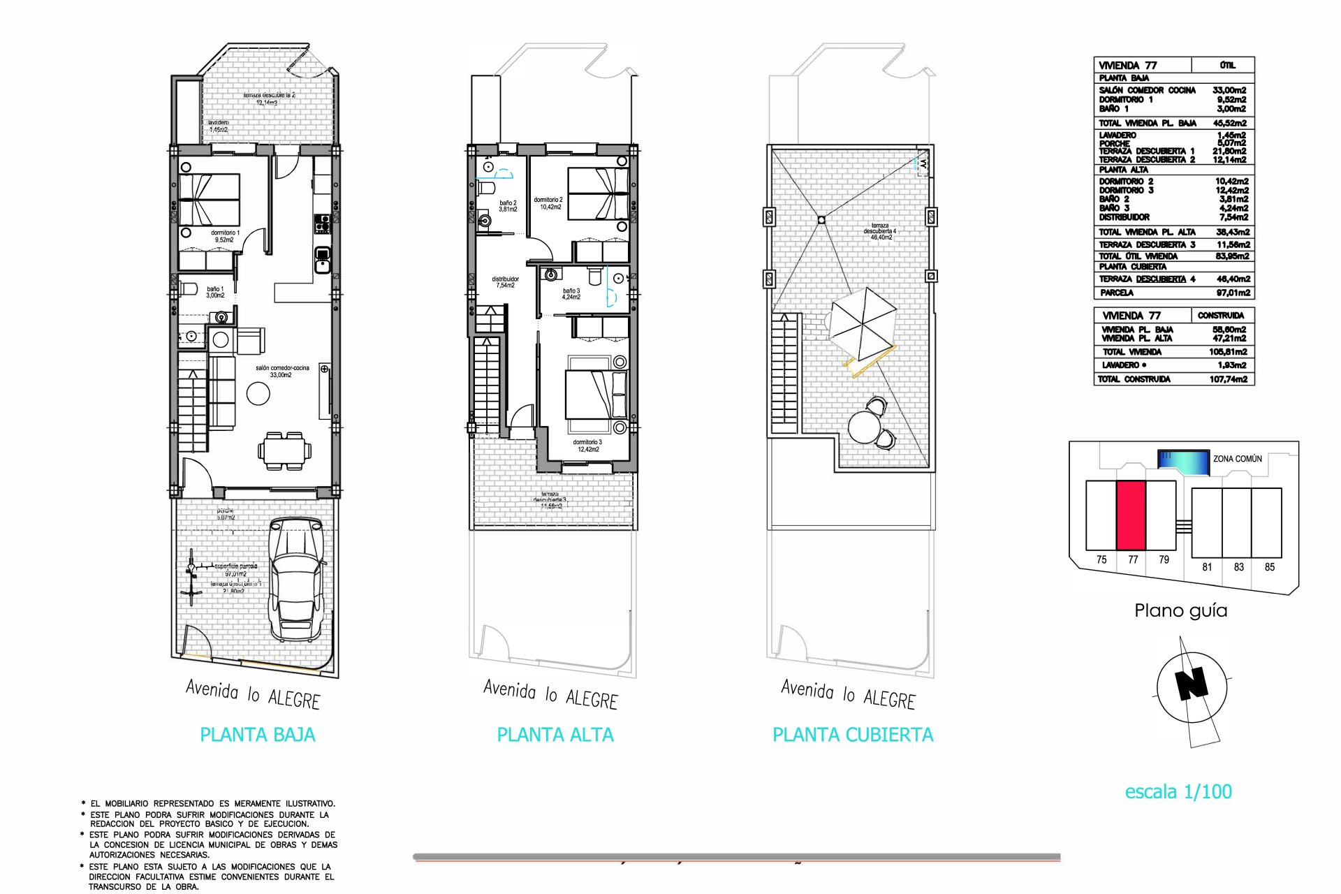 Located in the charming town of Pilar de la Horadada, this residential complex offers a variety of housing options that cater to different needs and lifestyles. With a total of 21 properties, future residents can choose from duplexes, semi-detached, and townhouses, each designed to maximize comfort and functionality. The location is ideal for those seeking a balance between tranquility and accessibility, as it is just 3 km from the sea, allowing for enjoyment of the sea breeze and pleasant coastal walks. Additionally, the nearest airport is 43 km away, facilitating connections for national and international travel. This community offers a welcoming and well-connected environment, perfect for families, couples, or anyone wishing to enjoy life on the Costa Blanca.